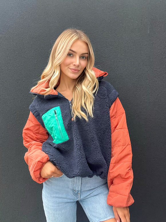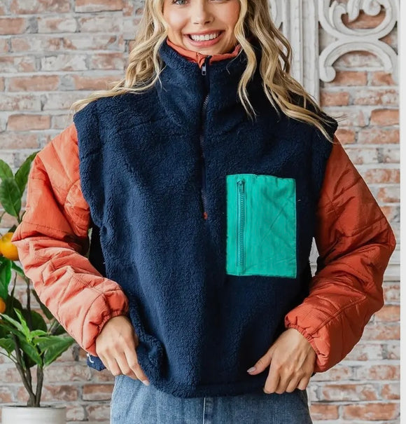 Fleece Quilted Puffer Sleeve Pullover / Multi