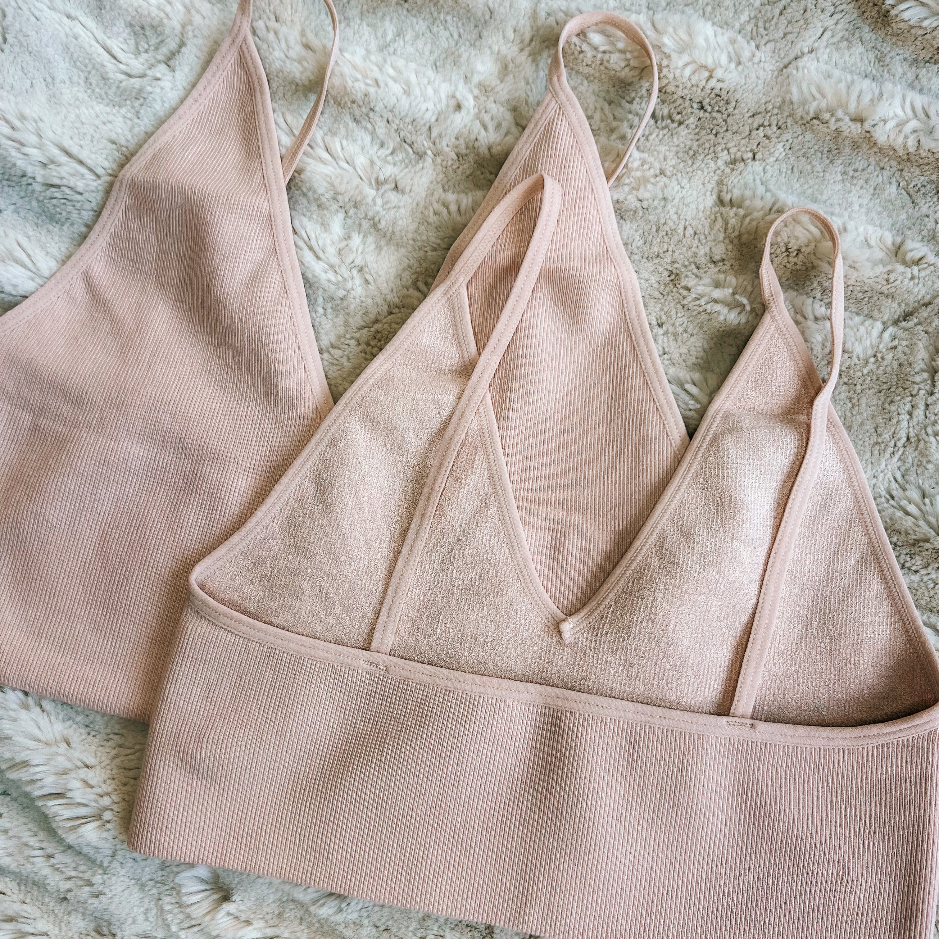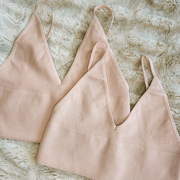Seamless, soft, and stretchy knit ribbed V-neck brami