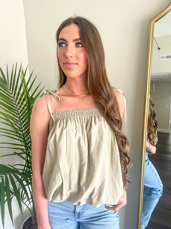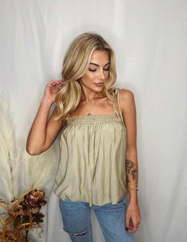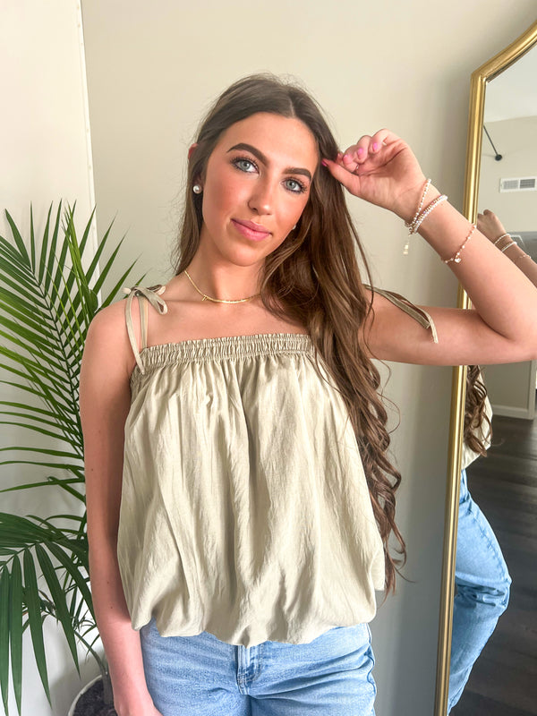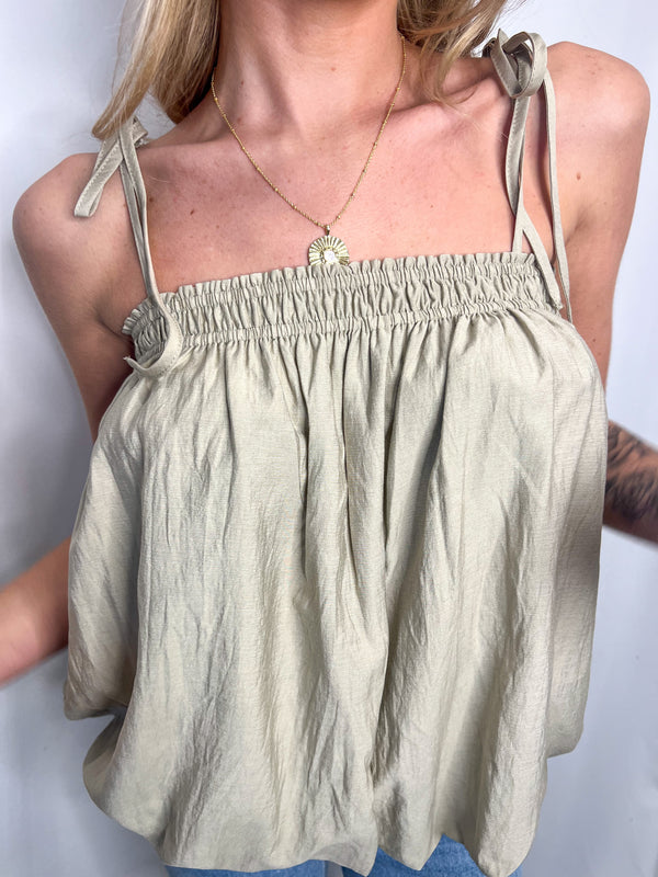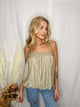 Woven Rayon Polyester Nylon Square Neck Spaghetti Tie Strap Top With Elastic Waist Band And Smocking
